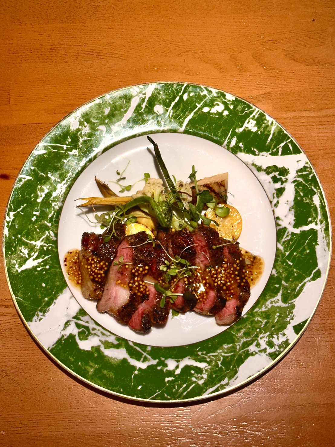 牛ハラミのステーキ レホールとマルサラワインソース (西洋ワサビとマルサラワインソース)